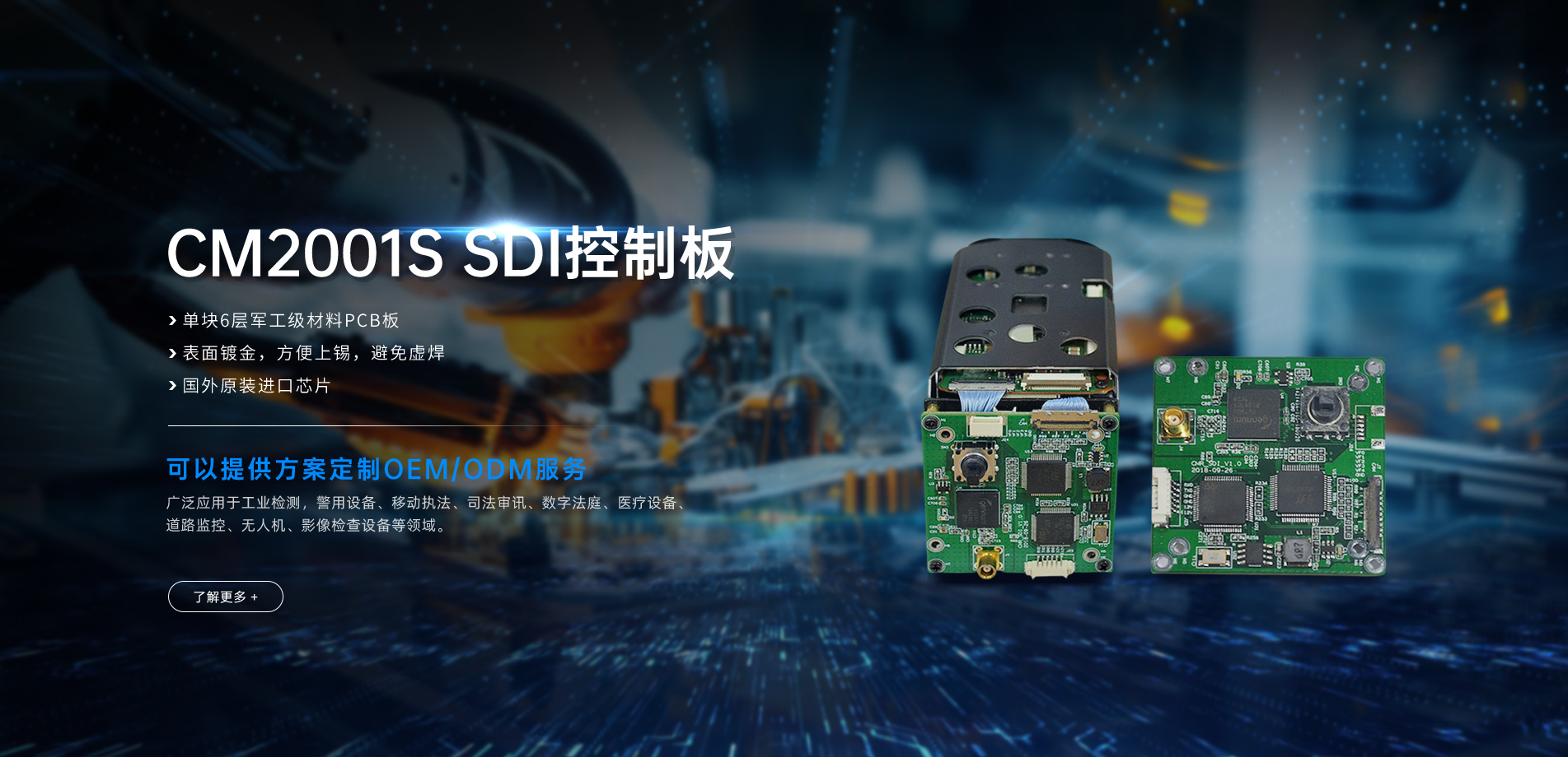 應用于手術直播攝像機、無人機航拍、工業檢測視頻設備、機器人攝像頭、監控視頻、視頻會議、教學錄播、審訊系統及其他特殊行業。